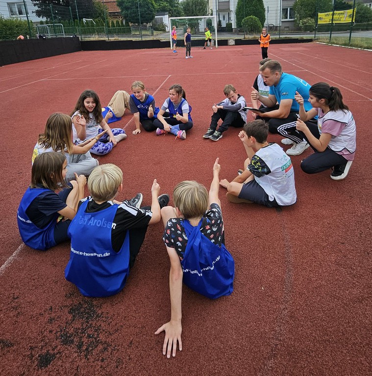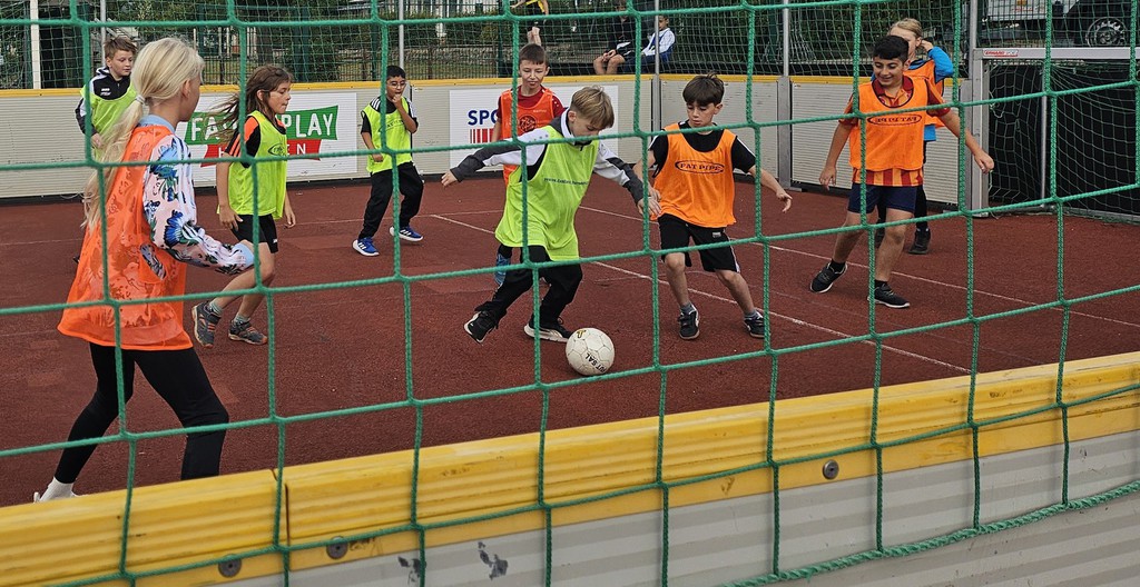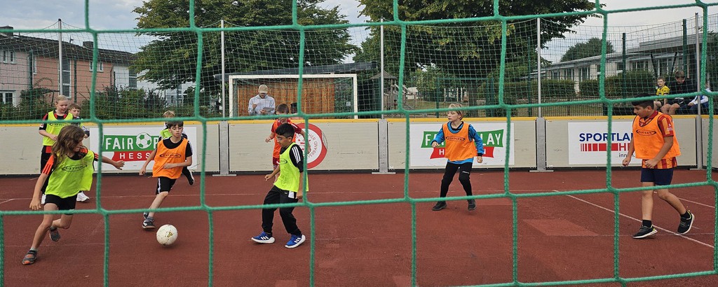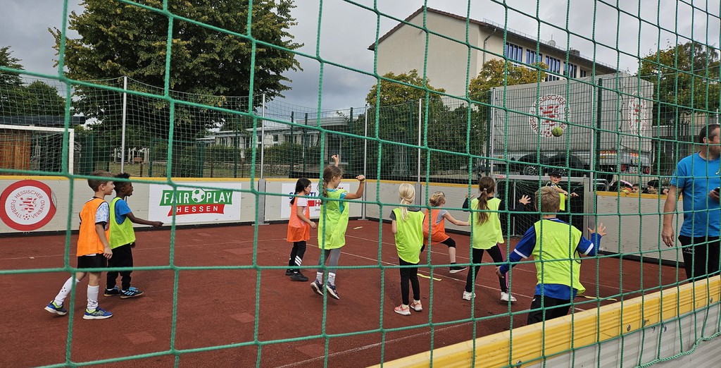 Jede Klasse wurde in 2-3 Teams mit je 6-8 Spielern im Vorfeld aufgeteilt. Nicht nur die erzielten Tore reichten für den Sieg, es wurden auch weitere Punkte für faires Verhalten sowie Einbindung aller Spieler und gezeigter Rücksichtnahme unter dem Gedanken des Fair Play vergeben. Neben den Torpunkten gab es maximal noch 5 Fairnesspunkte beim Straßenfußball und 3 Fairnesspunkte beim Straßenhandball. Durch dieses Konzept sollte der respektvolle Umgang der Schüler miteinander erlernt werden. Um die Regeln zu überwachen und die Punkte zu verteilen, standen besonders geschulte Fairnessschiedsrichter am Spielfeldrand des Soccer Courts. Ein Soccer Court ist ein kleines mit Banden abgegrenztes Fußballfeld. Die Schiedsrichter werteten nach jedem Spiel anhand eines Spielprotokolls das Spiel aus und besprachen das Verhalten und das daraus resultierende Ergebnis. An drei Tagen leiteten Luca Ewe, Konrad Nau, Paul Gießing und Lukas Beil die Begegnungen beim Straßenfußball an der Grundschule Neuer Garten. Sie gehören zum Team von Theo Schätte, dem Projektbeauftragen der Sportjugend Hessen für Mittel- und Nordhessen und Schulbeauftragten des Sportkreises Waldeck- Frankenberg, welcher das Projekt seit Jahren an die Schulen bringt. Beim Straßenhandball leiteten Carsten Habermann und Kim Hering die Spiele. Vielen Dank!